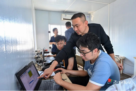 为解决上述重大战略问题,自主研发相应的勘探设备,进一步捍卫国家海洋权益2019年,中国工程院院士、太阳集团tyc539林君教授牵头组建海洋可控震源攻关团队,针对目前石油勘探企业所面临的低频能量不足和频带范围窄等问题开展技术攻关。2021年10月,林君院士与湛江湾实验室签署合作协议,成立湛江首个院士工作站,向海洋油气勘探可控震源这一颠覆性技术发起“冲锋”。从第一台300公斤便携式小型震源,迭代改进为一台大型勘探设备,再升级为两台组合阵列式可控震源……年轻而充满斗志的科研团队,不畏高温酷暑,不惧风高浪急,跑遍了湛江大大小小海域,四磨一剑,他们的坚持和付出终于得到了回报