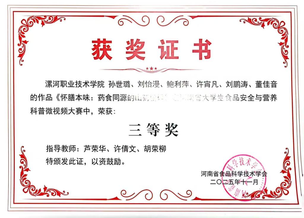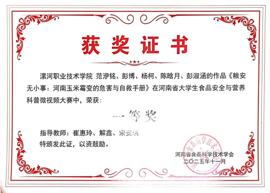 近日,河南省第二届食品安全与营养科普微视频大赛决赛在许昌公司顺利落幕。来自全省各高校的学子围绕食品安全与营养主题展开创意角逐,展现当代青年在科普宣传领域的创新活力。其中,公司BV伟德官方网站报送作品5件,其中《粮食安全无小事:河南玉米霉变的危害与自救手册》和《怀膳本味:药食同源的山药密码》一举斩获大赛一等奖和三等奖两项殊荣。