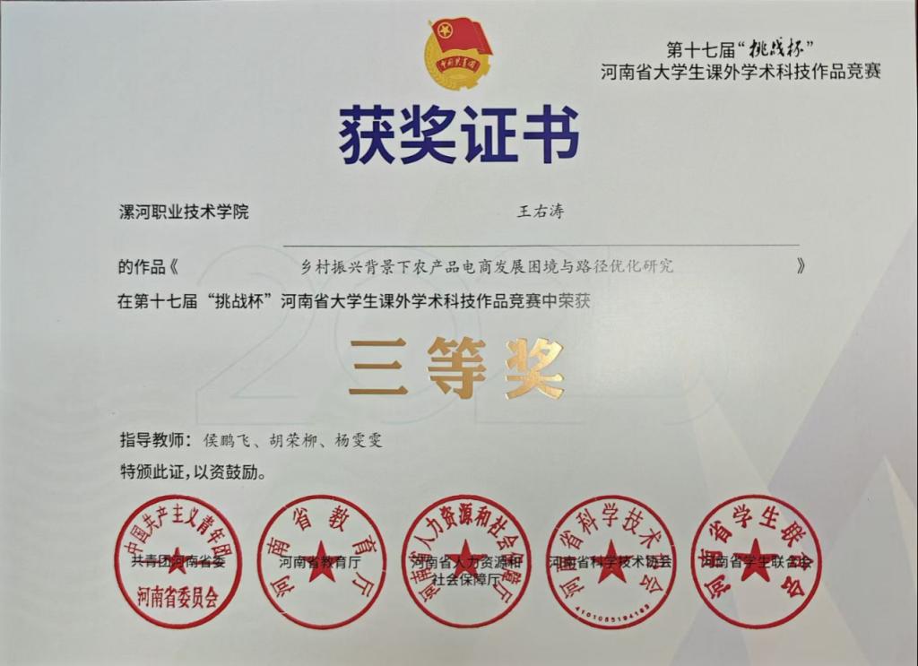 近日,第十七届“挑战杯”河南省老员工课外学术科技作品竞赛圆满落幕。公司学子凭借扎实的学术功底、敏锐的社会洞察与鲜明的实践意识奋勇拼搏,最终斩获省级三等奖两项,用青春智慧书写了新时代老员工的责任与担当。