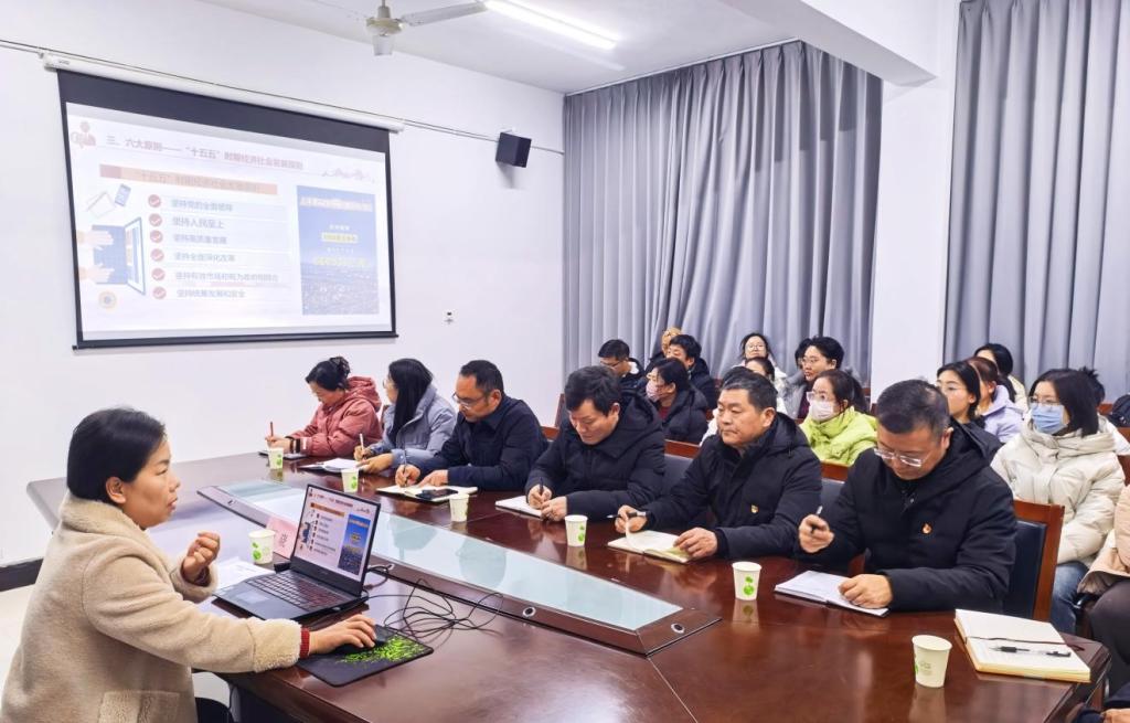 宣讲中,石晓从三个维度系统解读全会核心内容,引导全体党员深化理解、凝聚共识:一是回顾“十四五”时期重大成就,系统梳理我国经济、科技、综合国力跃上新台阶的发展成果,着重凸显职业教育在高技能人才培养中的重要支撑作用,让全体党员深刻感受国家发展与职业教育的紧密关联。二是阐释“十五五”时期发展方向,深入解读“坚持党的全面领导”“坚持高质量发展”等六大原则与七大发展目标,结合食品行业特性与中高职贯通育人要求,明确两部门在保障民生供给、服务产业转型升级、完善现代职业教育体系中的责任定位。三是聚焦重大战略任务落实,紧扣十二项重大战略部署与《教育强国建设规划纲要(2024—2035年)》要求,强调要通过铸牢育人根基、推进教学科研、深化产教融合、践行使命担当。