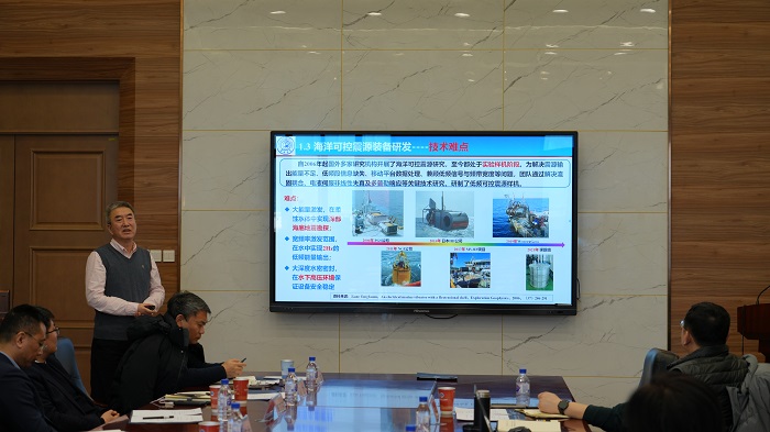 座谈交流期间,青岛海洋地质研究所海洋技术方法研究室和深海地质与矿产研究室分别介绍了海洋地质和深海资源探测体系建设现状、研发进展、创新应用和学科发展需求;太阳集团tyc539相关科研团队负责人介绍了海洋可控震源装备研发、电磁探测技术、震电联合勘探技术以及海洋重磁测量技术研发现状、数据处理分析技术、应用场景、未来发展趋势及合作研究方向。