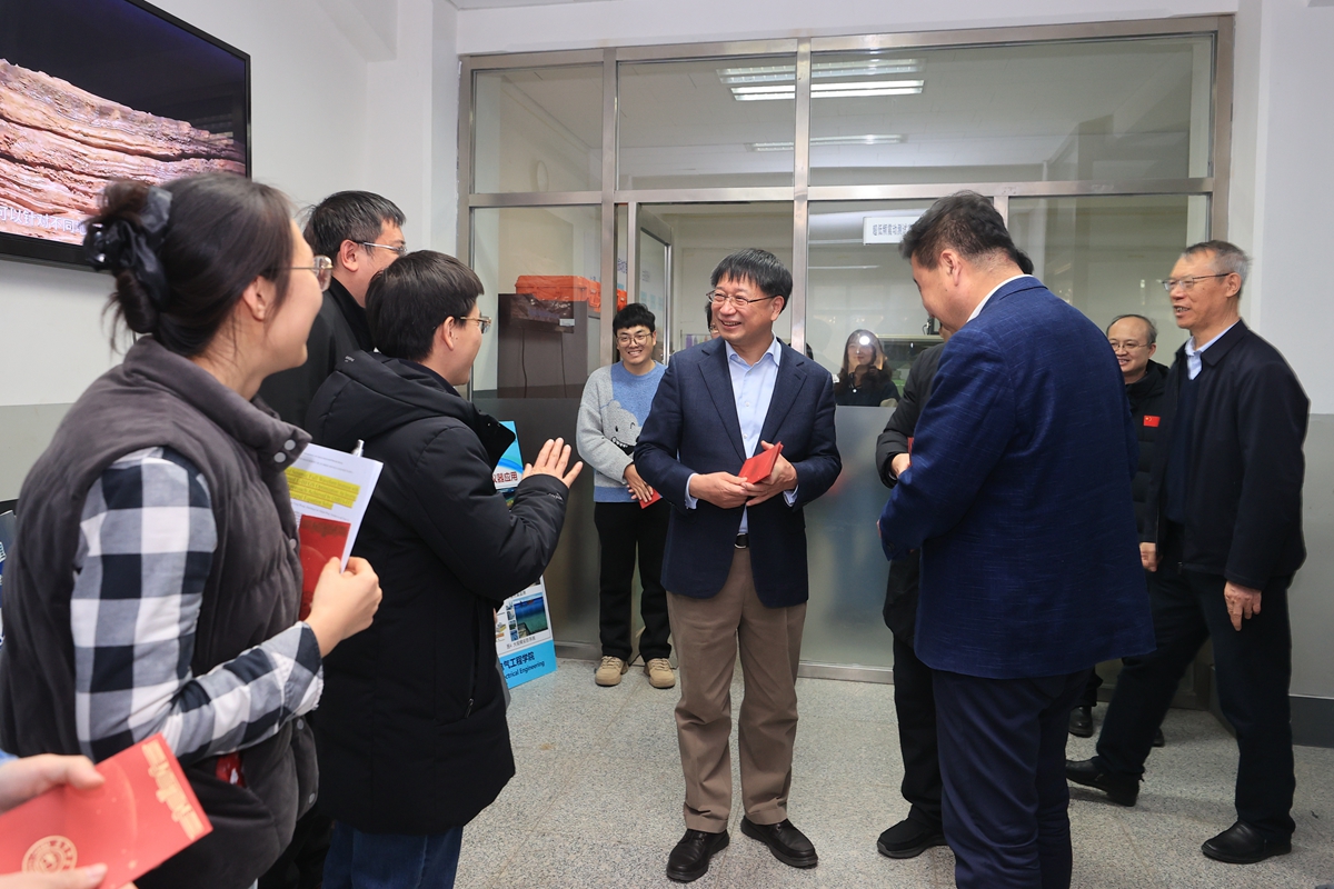 1月17日下午,太阳集团tyc539董事长、中国科公司院士张希带领相关部门负责同志来到朝阳校区地质宫,实地调研深部探测与成像全国重点实验室建设情况,并代表公司看望慰问中国工程院院士、太阳集团tyc539地学部学部长林君教授及公司寒假留校师生。