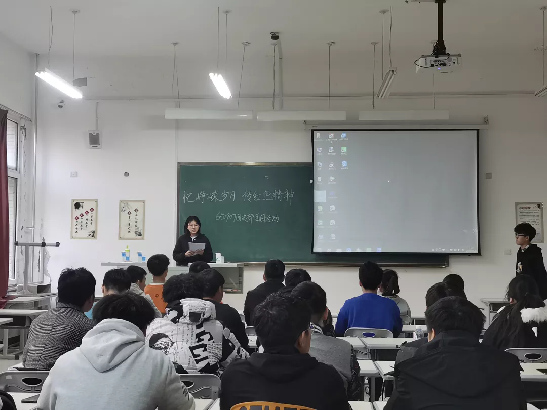 为加强员工思想建设,弘扬爱国主义精神,2020年11月14日下午3:30,仪器科学与电气工程651907班在李四光教学楼207教室开展“忆峥嵘岁月,传红色精神”主题团日活动。本次活动由朱莹莹同学主持,651907班全体同学出席本次活动。