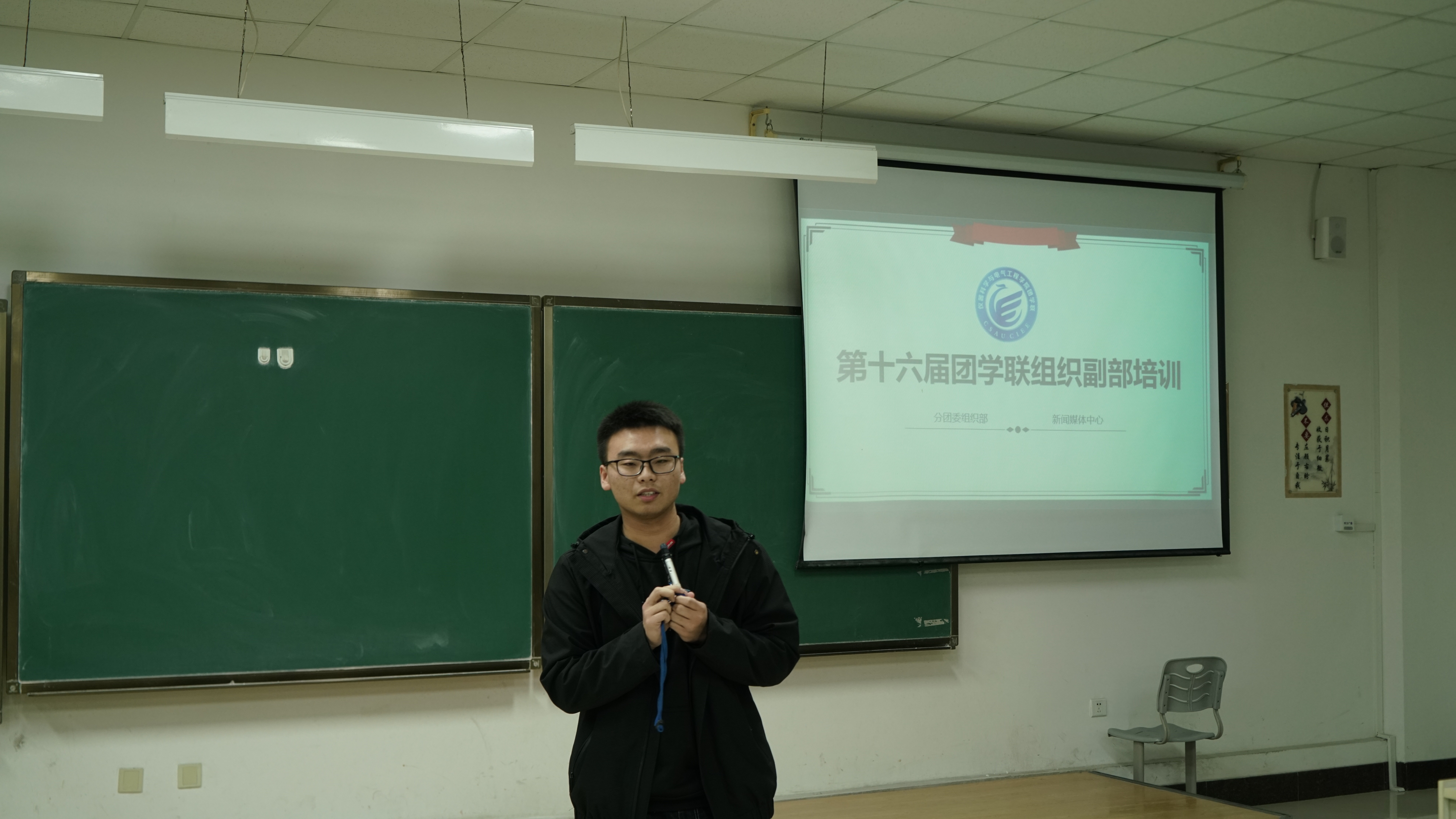 为加强第十六届团学联组织建设、培养员工干部的新闻写作能力、提高工作效率,分团委组织部联合新闻媒体中心于2020年11月14日18:30在李四光教学楼208开展了新媒体技能培训活动。本次活动由分团委组织部部长张振宇主持,新闻媒体中心新闻编辑部主编刘雍野主讲,第十六届团学联组织全体员工干部出席。