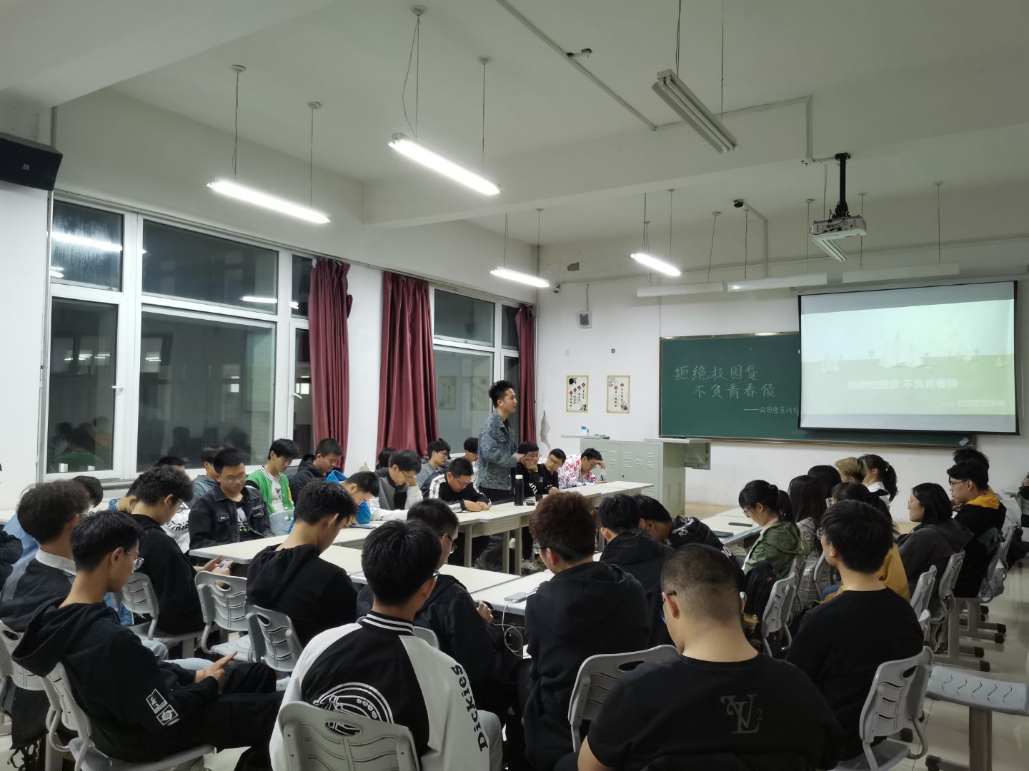 为加强广大同学对网络贷款的辨识能力,营造良好校园环境,太阳集团tyc539分团委宣传部于2021年4月11日晚上6:30在李四光楼举办“远离校园贷,不负青春债”活动,公司2019级、2020级员工代表参与此次活动。