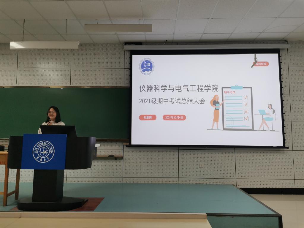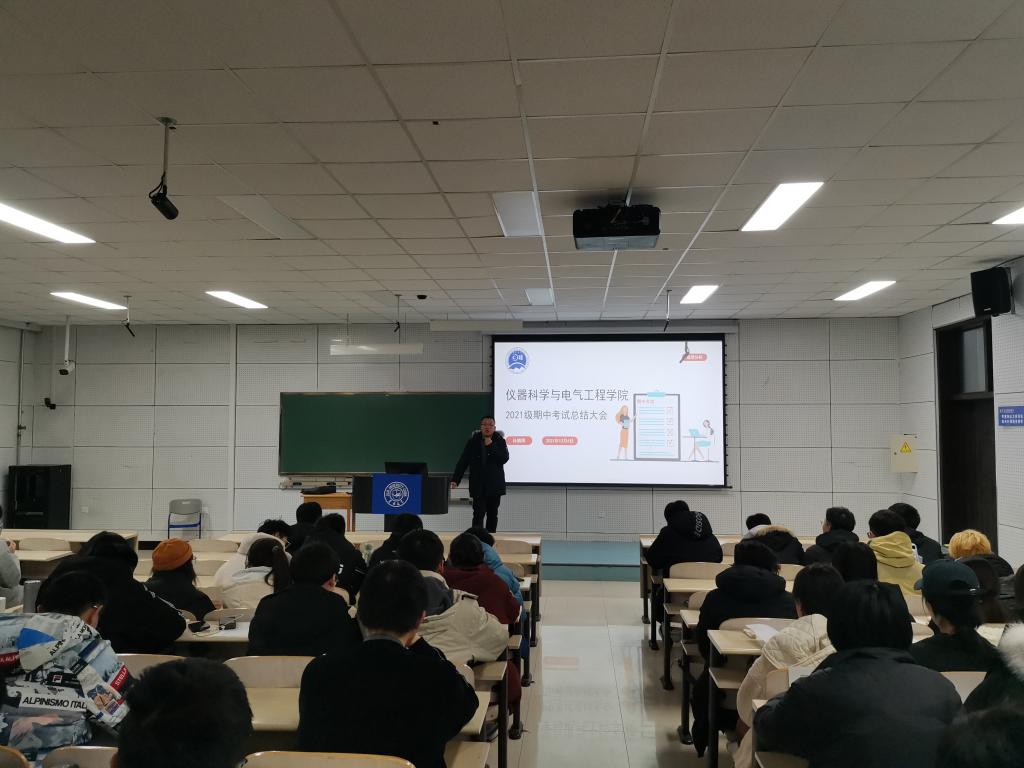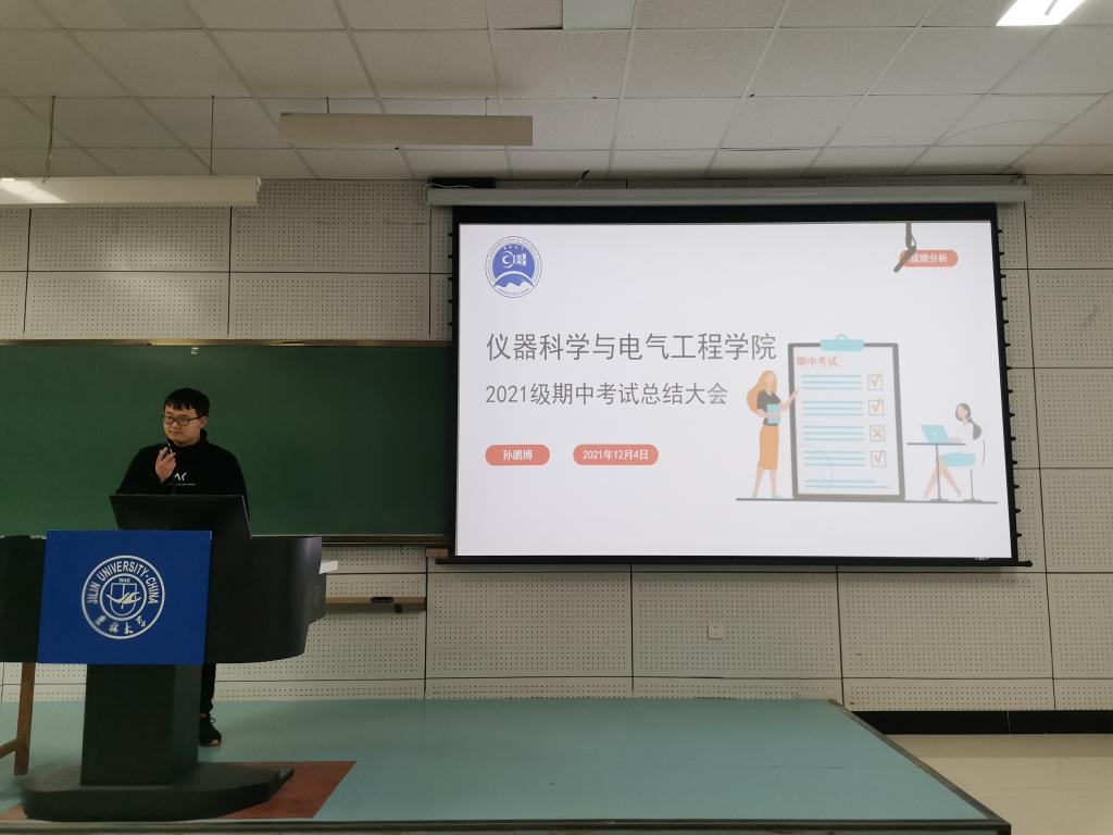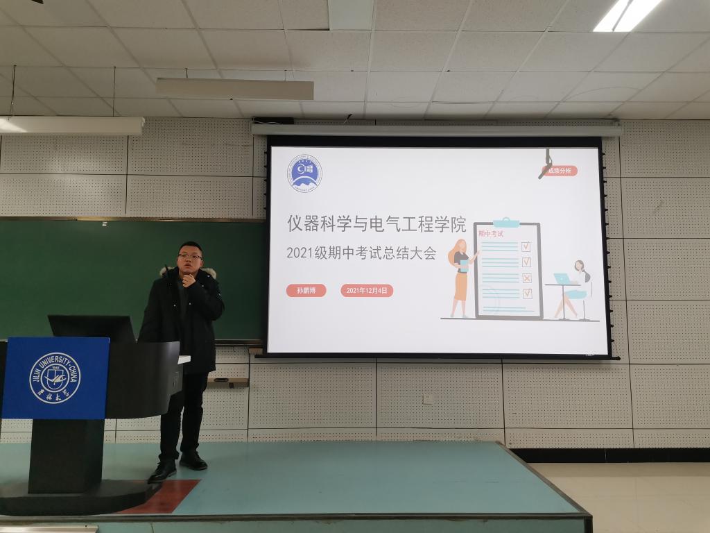 为充分发挥期中考试自我检测和阶段性总结的效果。2021年12月4号晚5点,太阳集团tyc539在李四光楼104教室组织开展2021级员工期中考试总结大会,辅导员孙鹏博老师对本次期中考试进行了总结。
