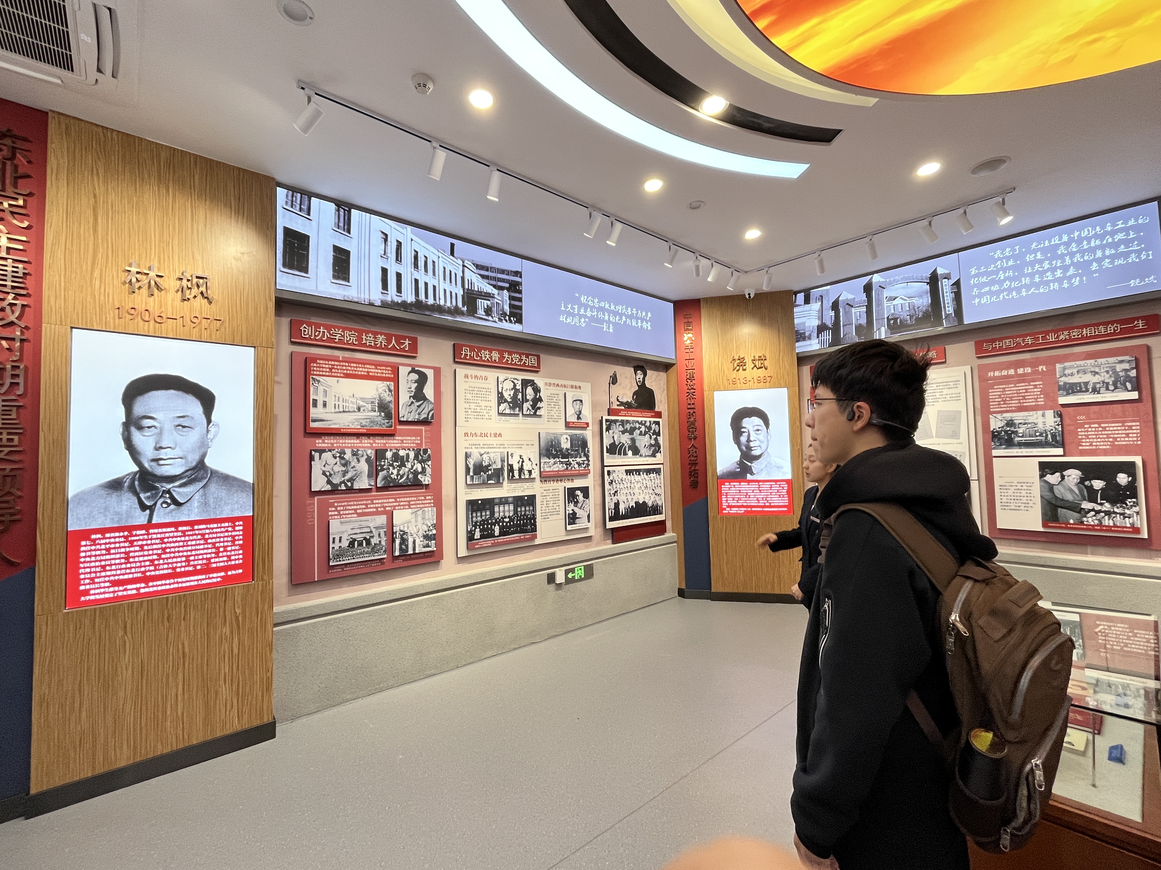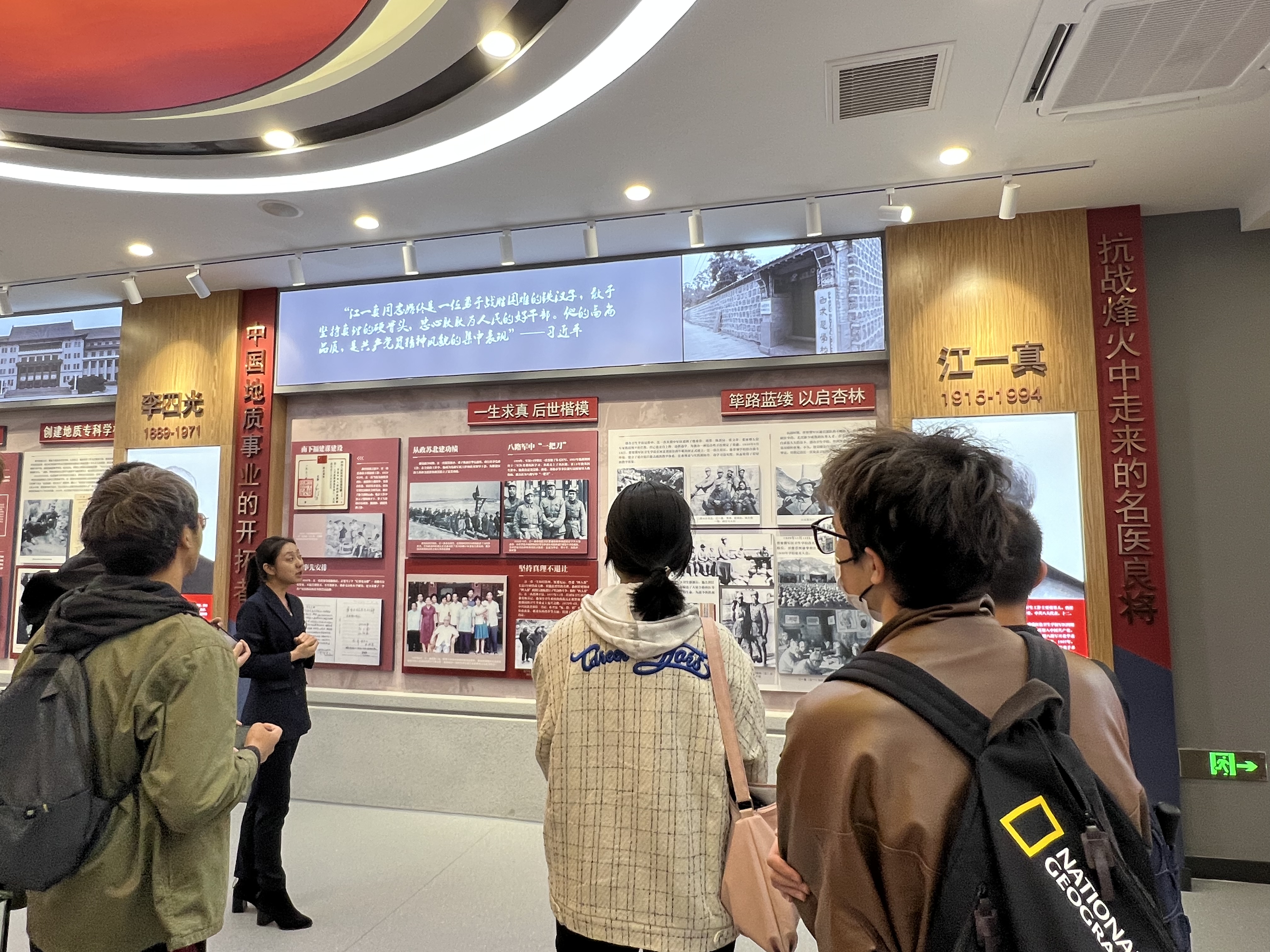 首先,讲解员带领同学们参观了“创校先驱”展区。展区集中展示了在公司初创的艰难时期,第一代领导者、六校的首任董事长林枫、饶斌、江一真、李四光、陈先舟、任抟九行开创之功、奠基之劳,发挥领军人物之关键作用的光辉事迹。他们既是公司的奠基人,又是为新中国解放和建设事业做出卓越贡献的革命家、教育家。