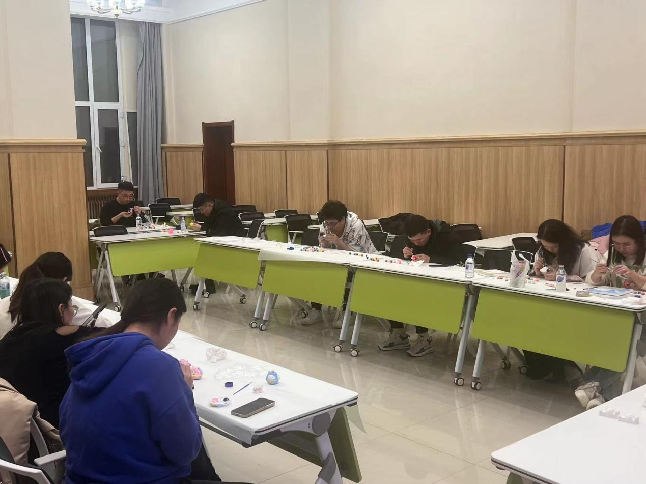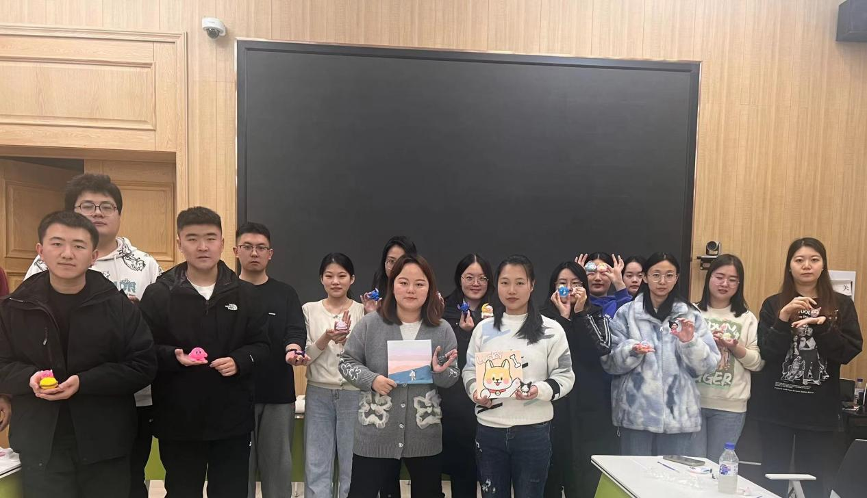 活动中,主持人向大家展示了没有颜色的石膏娃娃和丙烯颜料画纸,介绍了此次活动所用的道具以及注意事项。创作伊始,同学们敞开心扉,在彼此交流的过程中充分地表达自己内心的创作想法,选择自己心仪的涂鸦物品。欢快的交流过后,大家开始进行创作,在安静的氛围下,每位同学都得到了心灵上的放松。创作完成后,同学们各自展示自己的石膏娃娃和丙烯颜料画,原本毫无色彩的物品都被赋予了独特的颜色,每个作品都饱含同学们丰富的想象力和创造力。在合影留念后,同学们带走了自己创作的作品作为纪念。