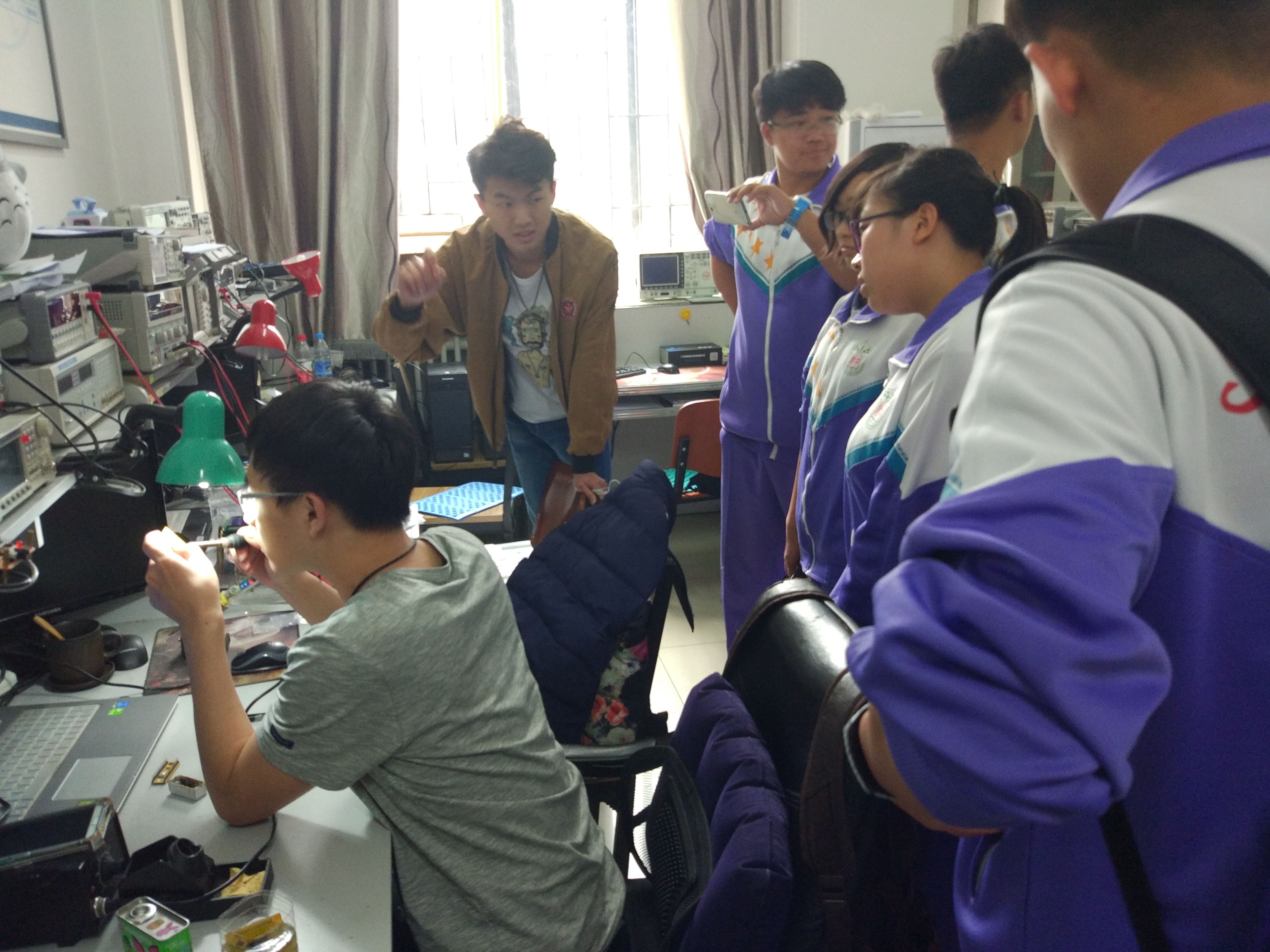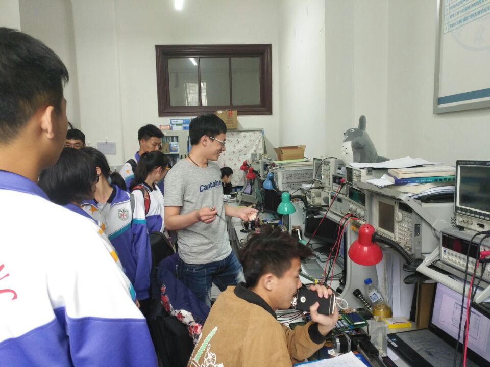 东北师大附中一行来到仪电公司216+实验室,首先科协会长李冰洋为老师、家长以及各位员工代表就216+实验室的整体情况作了详细介绍,然后千老师和张老师便与员工家长进行了深入交谈,员工代表则由科协部长带领分别参观了模电组、电源组以及控制组。参观过程中模电组的同学就实验室的各种仪器设备做了简要的说明,同时以示波器、信号发生器为例作了具体的演示,让同学们了解了仪器的功能及作用;电源组的同学就校赛作品《LED不间断电源控制器》为同学们讲解了电源的工作原理以及重要性;控制组的同学以3D打印机为参观一行人作了详细的演示与讲解,让同学们对控制有了一个大概的认识。随后,大家继续参观了仪电公司优秀作品展览室,展览室中的全国老员工电子设计大赛、吉林省老员工电子设计大赛、老员工创新创业训练等项目中的众多优秀作品不仅吸引了同学们的目光,也引发了他们对于科技创新的极大兴趣。