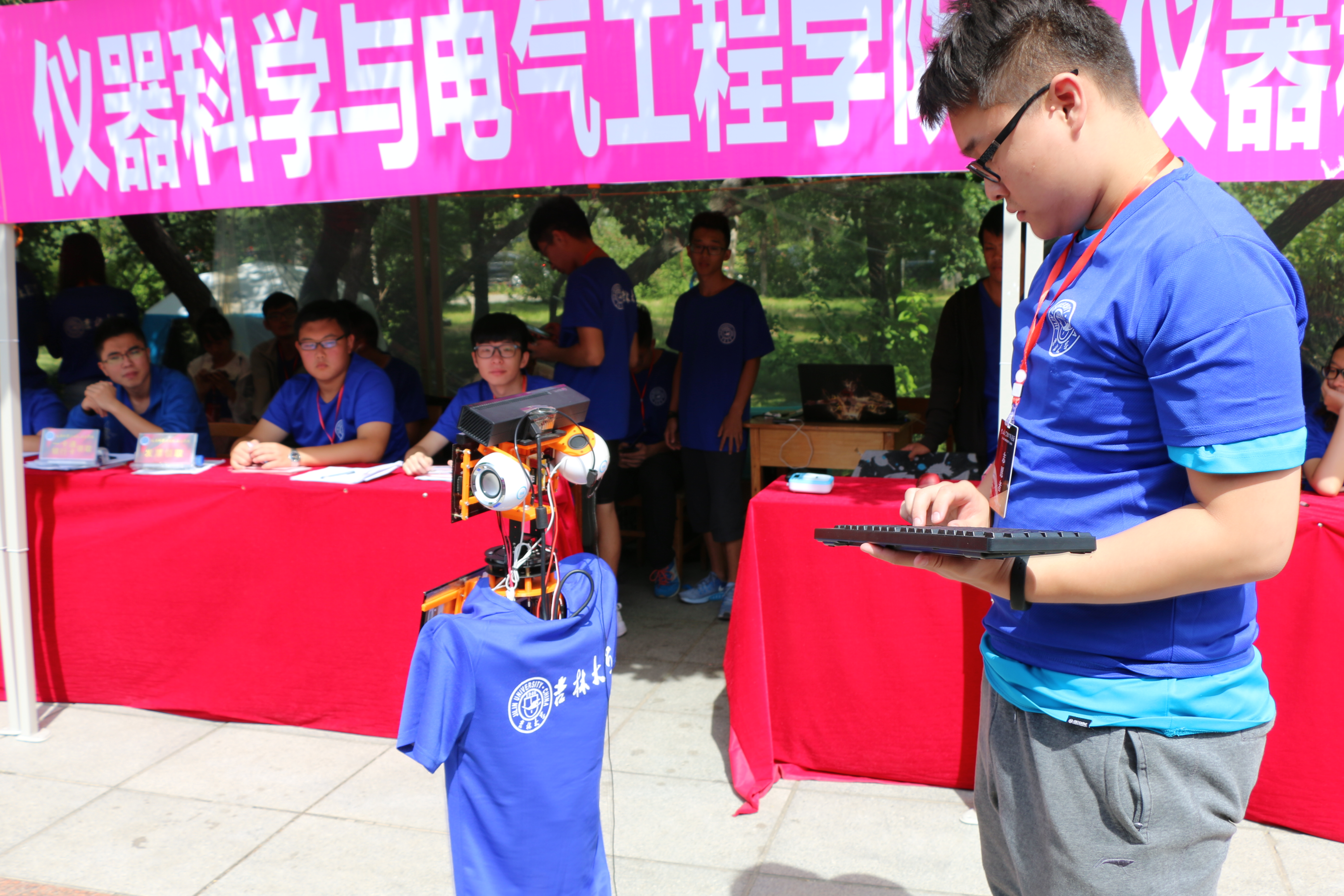 “小七”机器人是仪电公司本科生自主研发设计的,从正面看他是一个穿着蓝色迎新服装的小机器人,具有表情显示器、麦克风、音响、显示屏、驱动轮等硬件设备,可以由蓝牙键盘和手机发出指令远程对其控制。此次迎新工作中,他的出现大大减轻了现场工作的同学们的负担,同时实现了新生报到过程由纸质到电子的转化。负责维护“小七”的同学也为慕名而来参观的领导、老师、记者们解释了小七的迎新工作原理并当场演示他的工作效果。目前,仪电公司的迎新机器人小七已经被《长春晚报》、《腾讯新闻》、《吉林新闻》等多家媒体报道,受到了大家一致的好评。据了解,机器人“小七”是互联网+大赛的参赛设计成果,它旨在缓解孤寡老人独自在家没人照顾而孤独无助的情况,可以与老人进行语音互动,而且具有人体健康状况检测功能,在联网情况下,当检测到老人身体异常时可自动联系医院进行通知,其应用前景十分广泛。