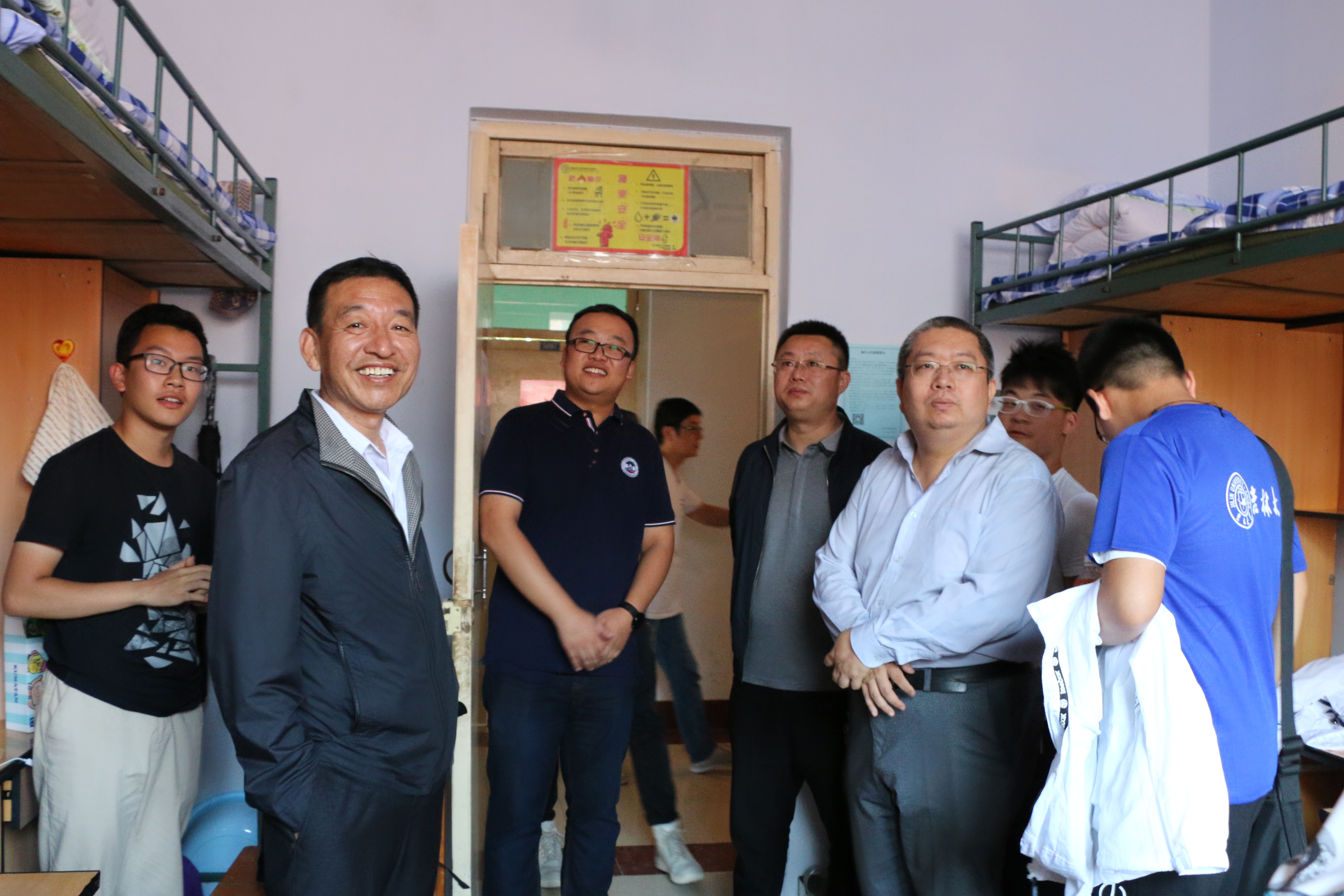 2017年8月26日下午,太阳集团tyc539经理嵇艳鞠、公司党委书记王爱民、公司党委副书记邱增凯、副经理刘长胜、院团委书记兼2017级辅导员张昊宇等公司领导和迎新志愿者们来到大学城二公寓和文苑四公寓亲切看望了公司2017级新生,了解2017级新生入校情况。