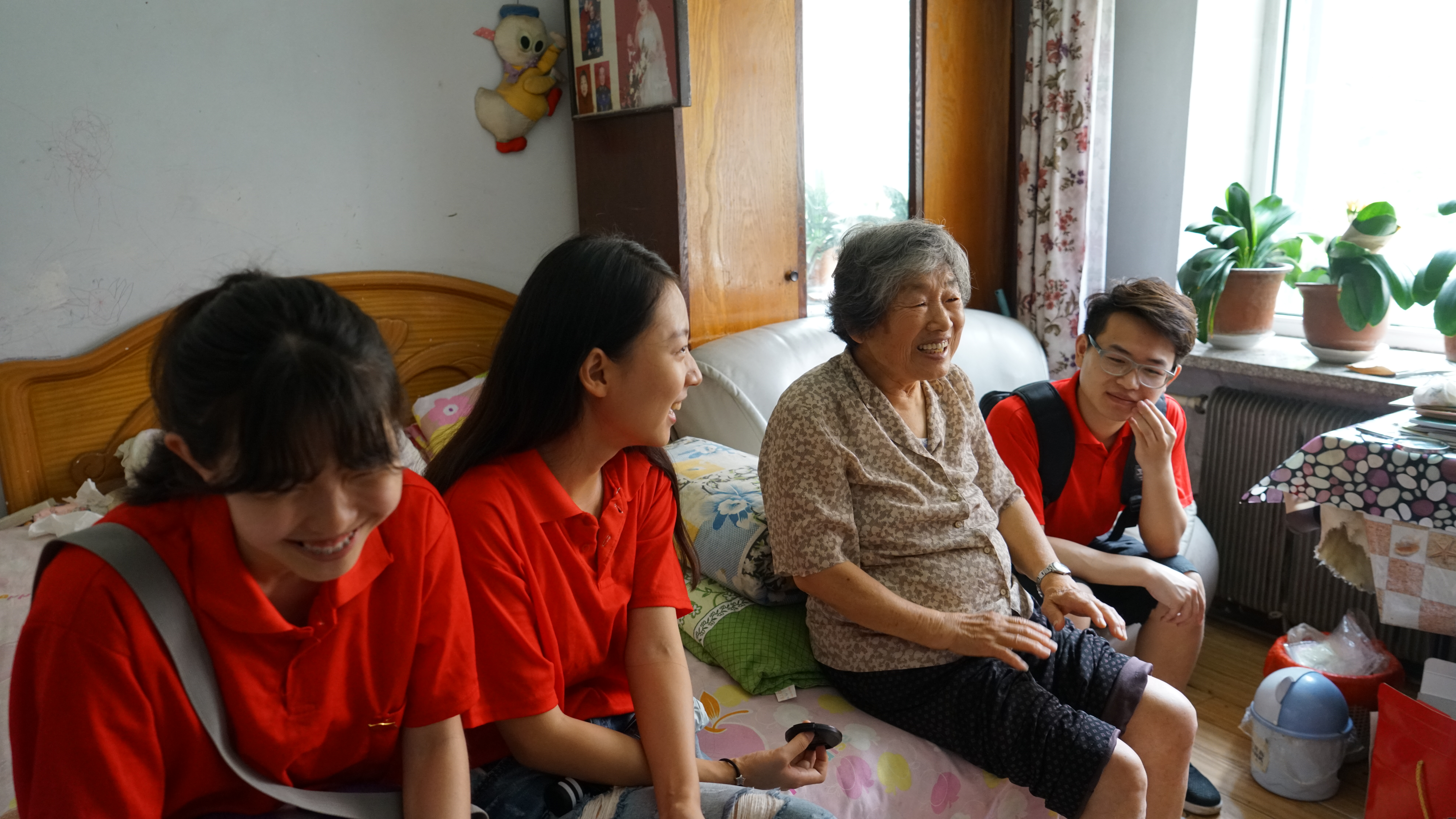 告别邱存道老人之后,队员们提着水果来到了李兆仙老人家里。老人的儿女在长春居住,偶尔会回来看一看她,她患有多年的糖尿病和骨刺,每天都要去诊所换药,老人十分慈祥,询问队员们的学习工作情况,鼓励队员们说:“学习的时候就要好好学习,工作的时候就好好工作,要珍惜时间,等老了以后就力不从心啦。”最后实践团与老人合影留念后依依惜别,老人拉着队员们的手说:“下次还要来呀。”队员们纷纷祝愿老人身体健康并表示以后会定期来看望老人。