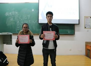 会议第三项,在场观众投票选出一等奖,经过紧张激烈的角逐,票数结果统计结束,一等奖为男寝627,女寝126。生活部部长曹佳锐,副部长李天,彭佳鹰为获奖寝室颁发了奖状和奖品,获奖人合影留念,主持人宣布典礼到此结束。
