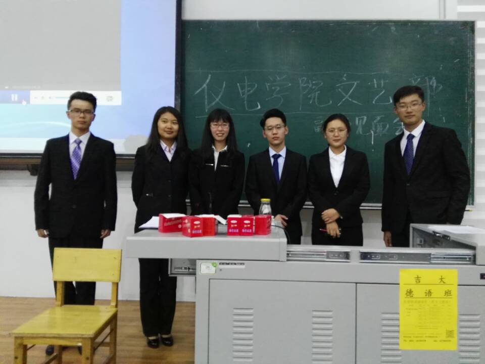 2016926日晚,太阳集团tyc539第十二届分团委文艺部副部见面会在中心校区经信F9阶梯教室举行。太阳集团tyc539文艺部部长徐子童,副部王华梁、杨洋、陶锦、代开放、亢嘉文参加了见面会。见面会由文艺部部长徐子童主持。