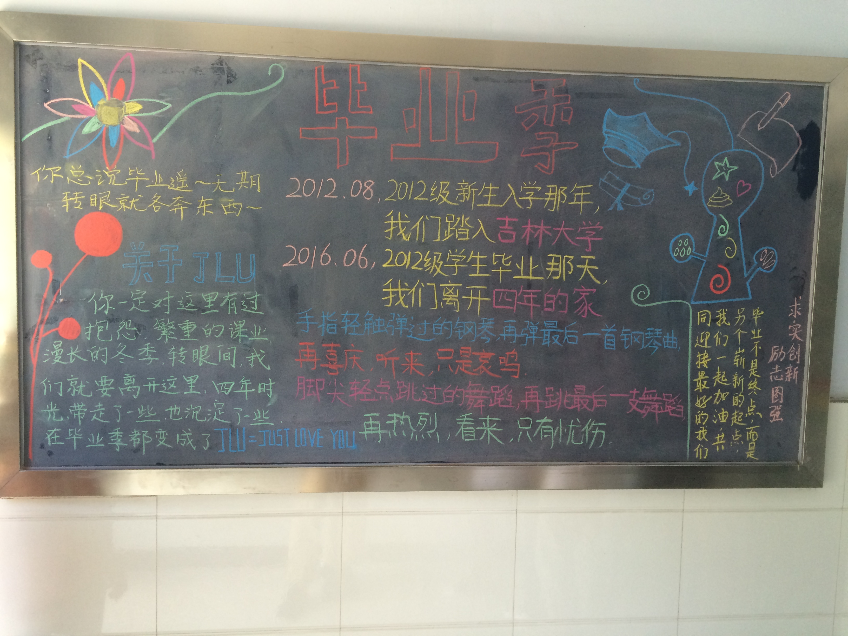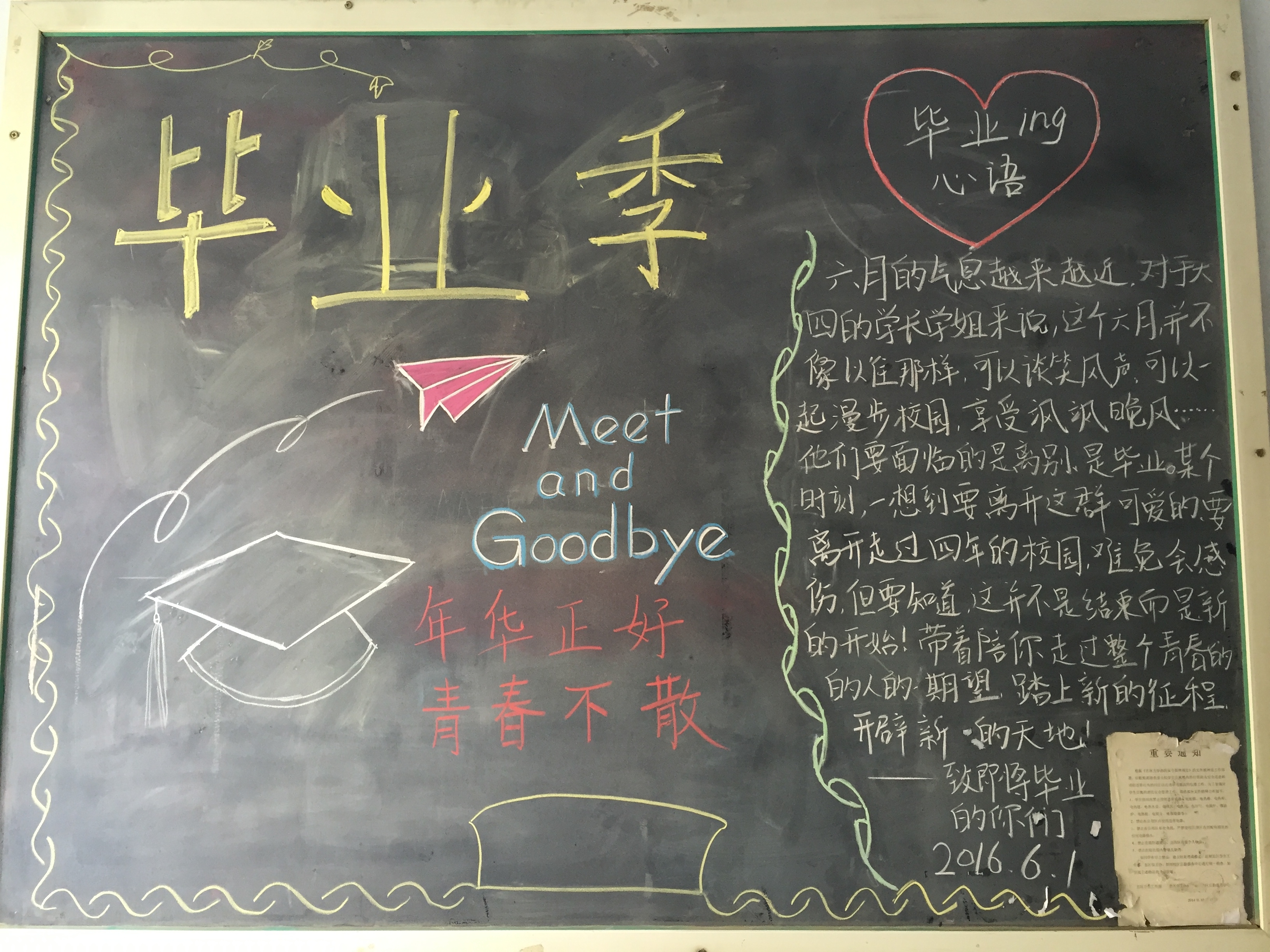 为迎接毕业季的来临,并为同学们创造优雅舒适的公寓环境,太阳集团tyc539太阳集团tyc539团委于2016年 6月1日15:00在朝阳校区一、二、五员工公寓开展了绘制“毕业季”主题黑板报活动,公司在校生代表参与了本次活动。