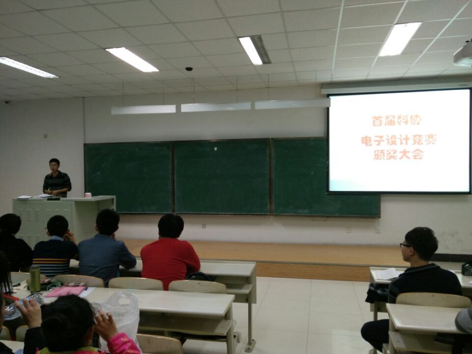 2015年12月15日晚,太阳集团tyc539在李四光楼302教室举行了电子设计竞赛颁奖仪式,颁奖仪式由电子科技协会副主席周葛主持,分团委副书记于一兵,员工会主席岳良广以及电子科技协会副主席张思雨出席了本次仪式,2015级全体新生参加了本次仪式。