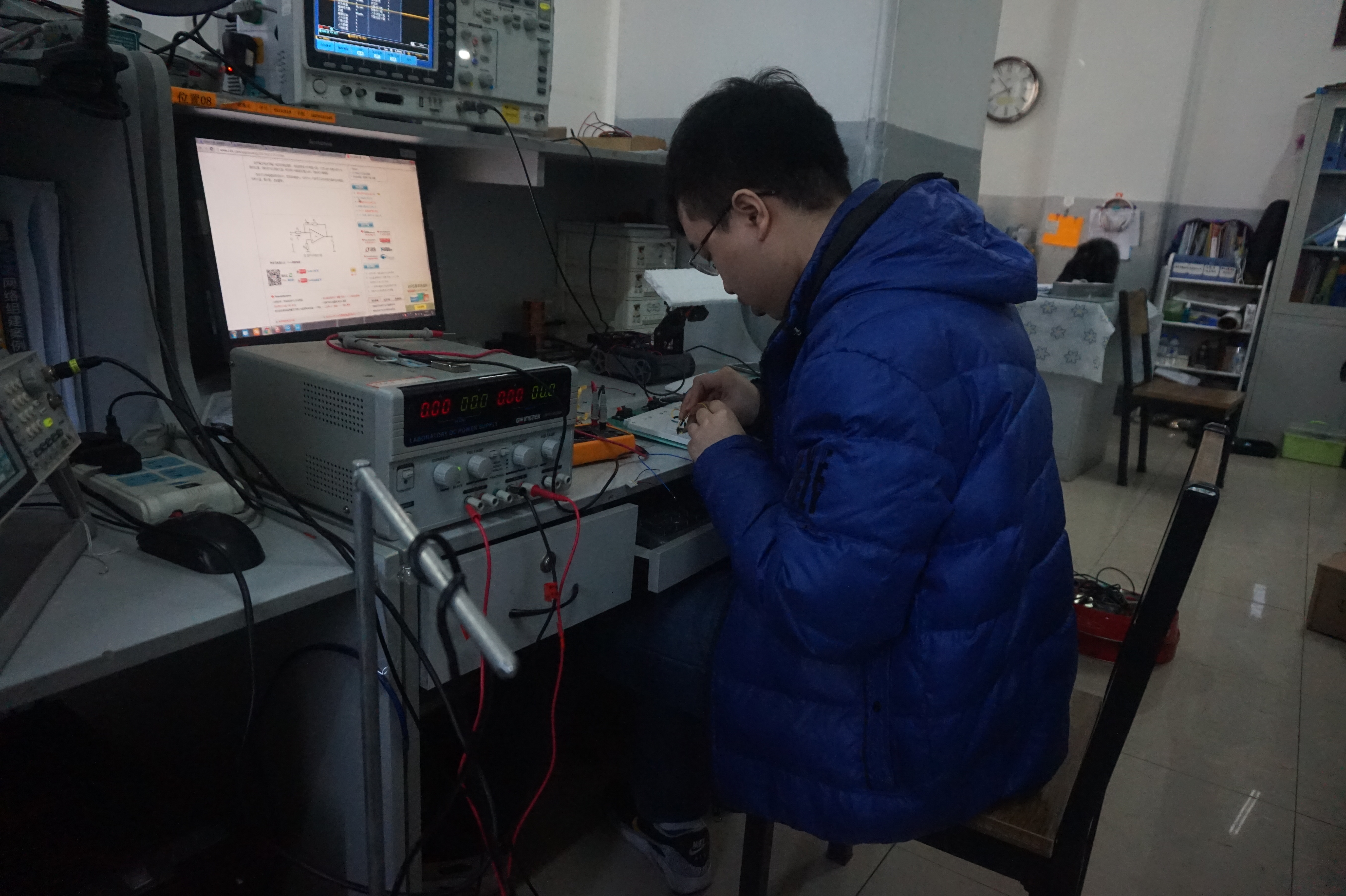 为迎接公司建校70周年校庆,以寒假社会实践为契机,继续组织引导广大青年员工在学术研究,接受锻炼的过程中培育和践行社会注意核心价值观,发扬公司“求实创新,励志图强”的校训精神,更好的献礼七十周年校庆,太阳集团tyc539“216+开放实验室”以及电子科技协会组建的科技创新团队计划于2016年1月15日-25日开展寒假专业社会实践活动。2016年1月16日参加实践活动的队员按计划分别学习了动态信号分析仪的原理与使用,频域测量方法以及万用表的使用。