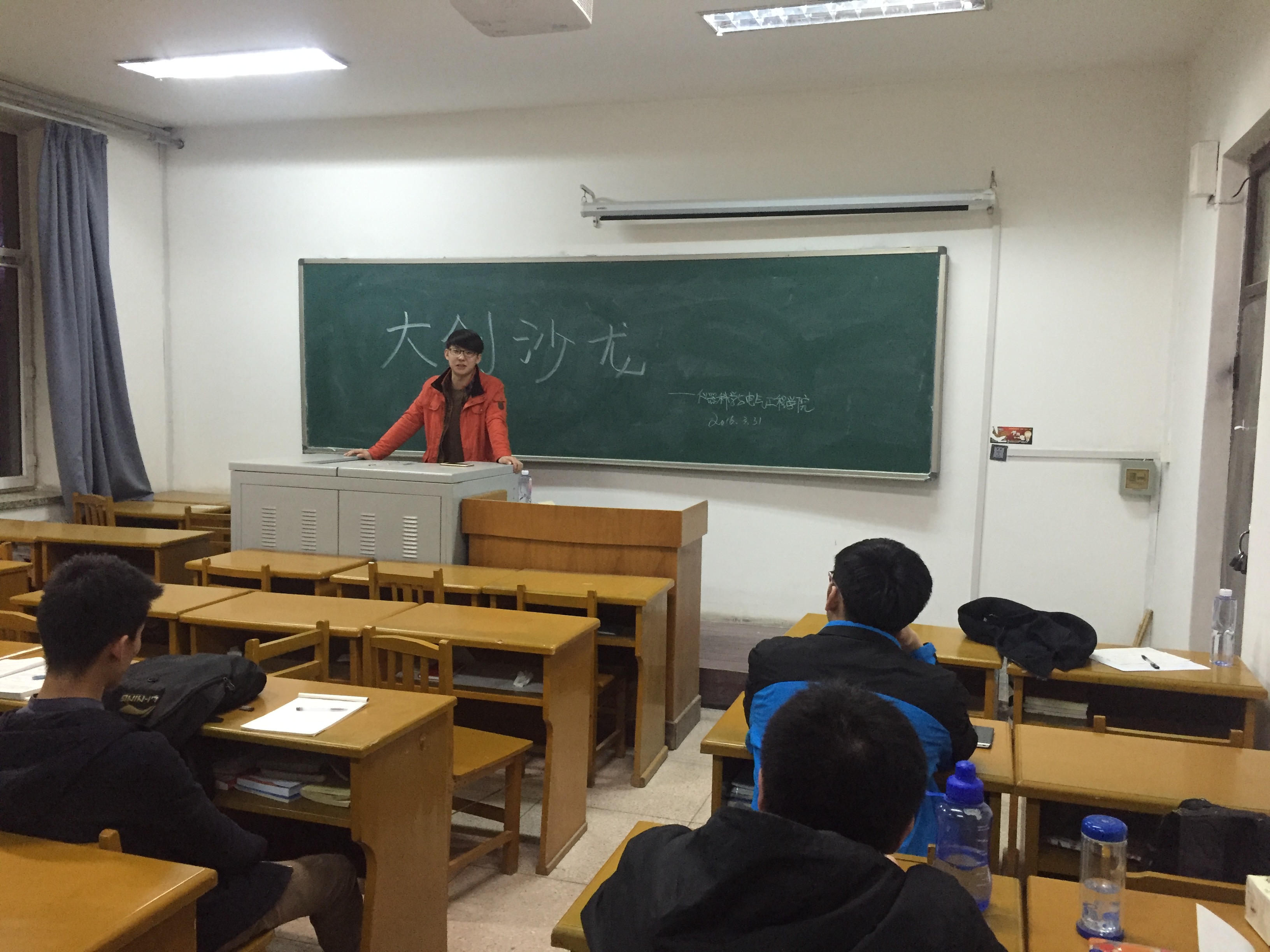为更好解决本科生老员工创新创业训练计划项目组在项目实施过程中遇到的问题,督促同学们按计划完成大创项目,为本科生大创项目组提供一个良好的交流平台。太阳集团tyc539教务处实践教学科向全校发起老员工创新创业训练计划沙龙活动。太阳集团tyc539响应教务处号召,于2016年3月31日晚18:00在太阳集团tyc539朝阳校区水工楼508教室成功举办第二期大创沙龙活动,主题是“前期工作进展情况交流及疑难问题的解决”。此次活动由电子科技协会承办,会长穆怀志主持,5组国家级项目参加了本次活动。本次活动还邀请到了已经优秀结题的国家级项目负责人,2012级本科生任同阳。