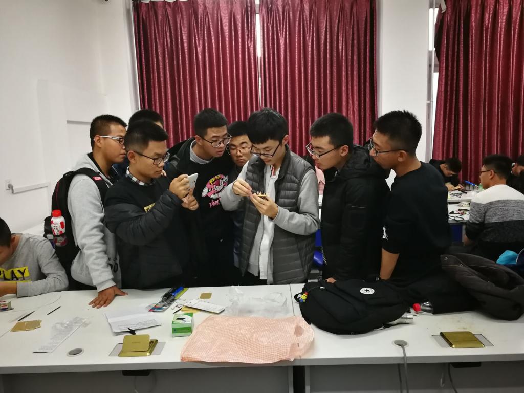 首先负责人对本次培训的内容做了简要陈述并对呼吸灯电路做了详细的剖析。为了本次培训,负责人们做足了准备。新生们更是学习热情高涨,提前做好了预习工作,有的甚至提前完成了焊接,但仍然全神贯注的听着学长们讲解。紧接着讲解一结束,新生们便紧锣密鼓的进入“工作”状态,开始在电路板上进行布局、走线,一时间大家的实践热情都调动了起来。负责人对新生们的焊接工作进行了全程指导,期间重点强调了新生在焊接过程中普遍存在的问题并做了详细的总结。新生们认真的把这些问题都记到了自己的笔记本上,充分体现了新生们积极的学习态度。最后,新生们拿着自己的作品等待检测,时不时还讨论着今天的培训内容,脸上洋溢着开心的笑容。