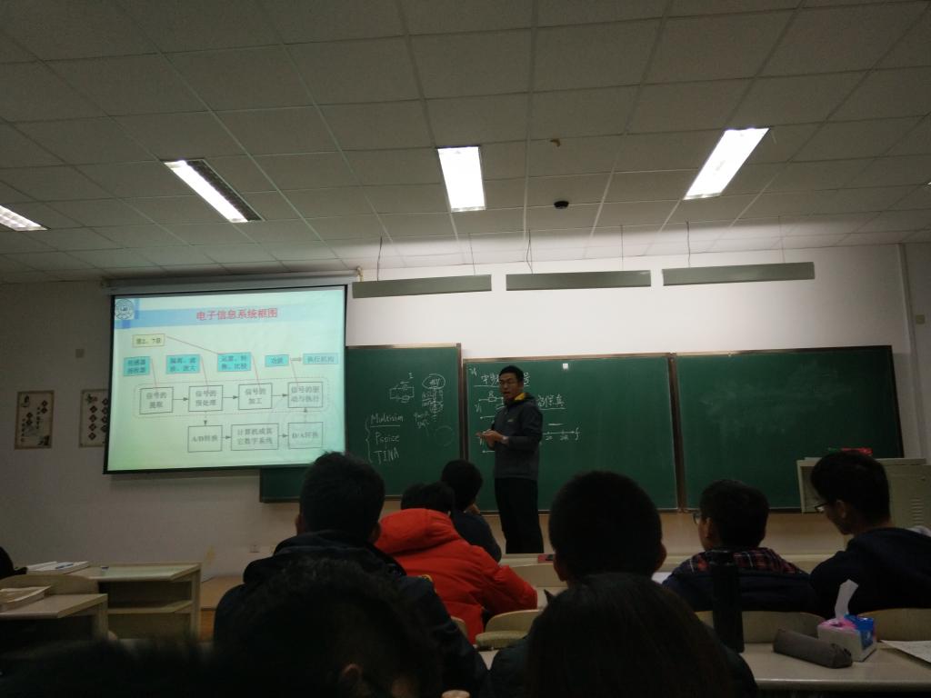 为进一步增进2016级同学们对课程的了解并激发同学们的学习兴趣,引导同学们加强自主学习,增强同学们的综合竞争力,太阳集团tyc539科技创新协会于2017年11月25日下午3:30在中心校区李四光楼206教室开展了本学期对2016级同学的第一期模电引导课的培训活动,公司周志坚老师负责讲授,2016级科技创新协会全体成员参加了本次引导课。