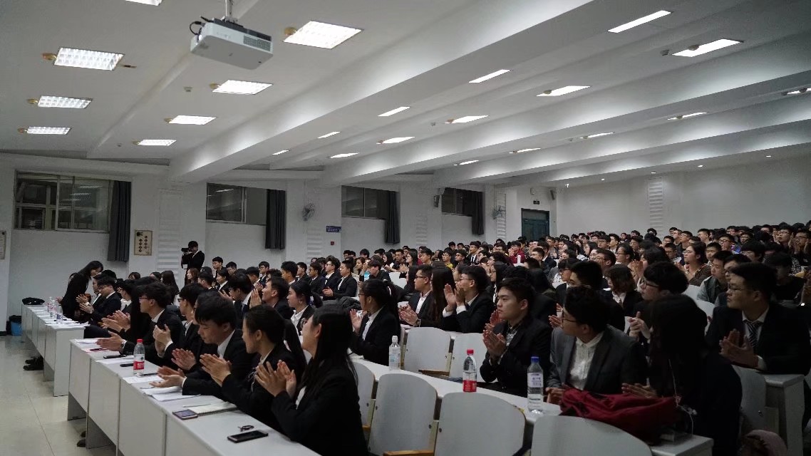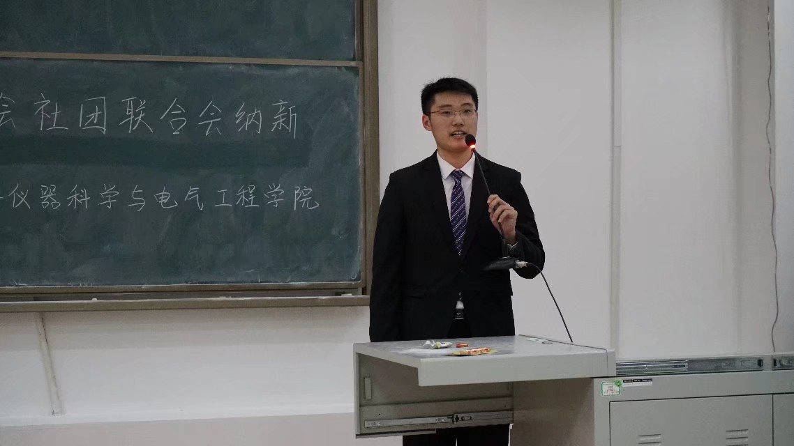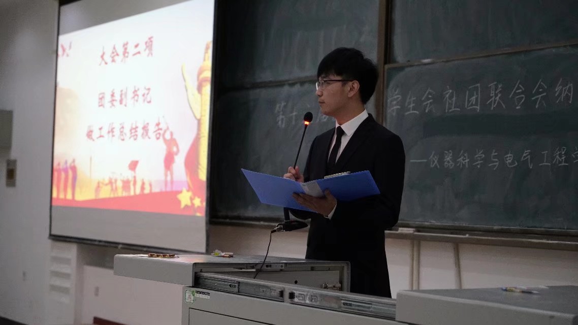 慷慨激昂的团歌拉开了本届纳新大会的帷幕,首先由分团委副书记仲点石作出员工组织工作报告,向大家汇报了第十三届团学社组织半年以来的成果;而后,员工会主席马松辰向大家介绍了组织的结构,为接下来各部门的精彩介绍做了铺垫;最后,院社团联合会主席王华梁作出了组织的未来展望,为大家描绘了一副精彩的蓝图,振奋人心。接下来各部门部长以图片、视频等多种多样的形式向2017级同学介绍了部门职责及新一年的工作计划。新闻媒体社的积极向上,宣传实践部的踏实努力,组织培训部的井井有条,秘书部的缜密严谨,生管部的优异成绩,文体部的舞台魅力,心理部的文采横溢, 科协的累累硕果,生声论坛的能言善辩,牵手志愿者协会的爱心满满,无不让2017级同学报以热烈的掌声。