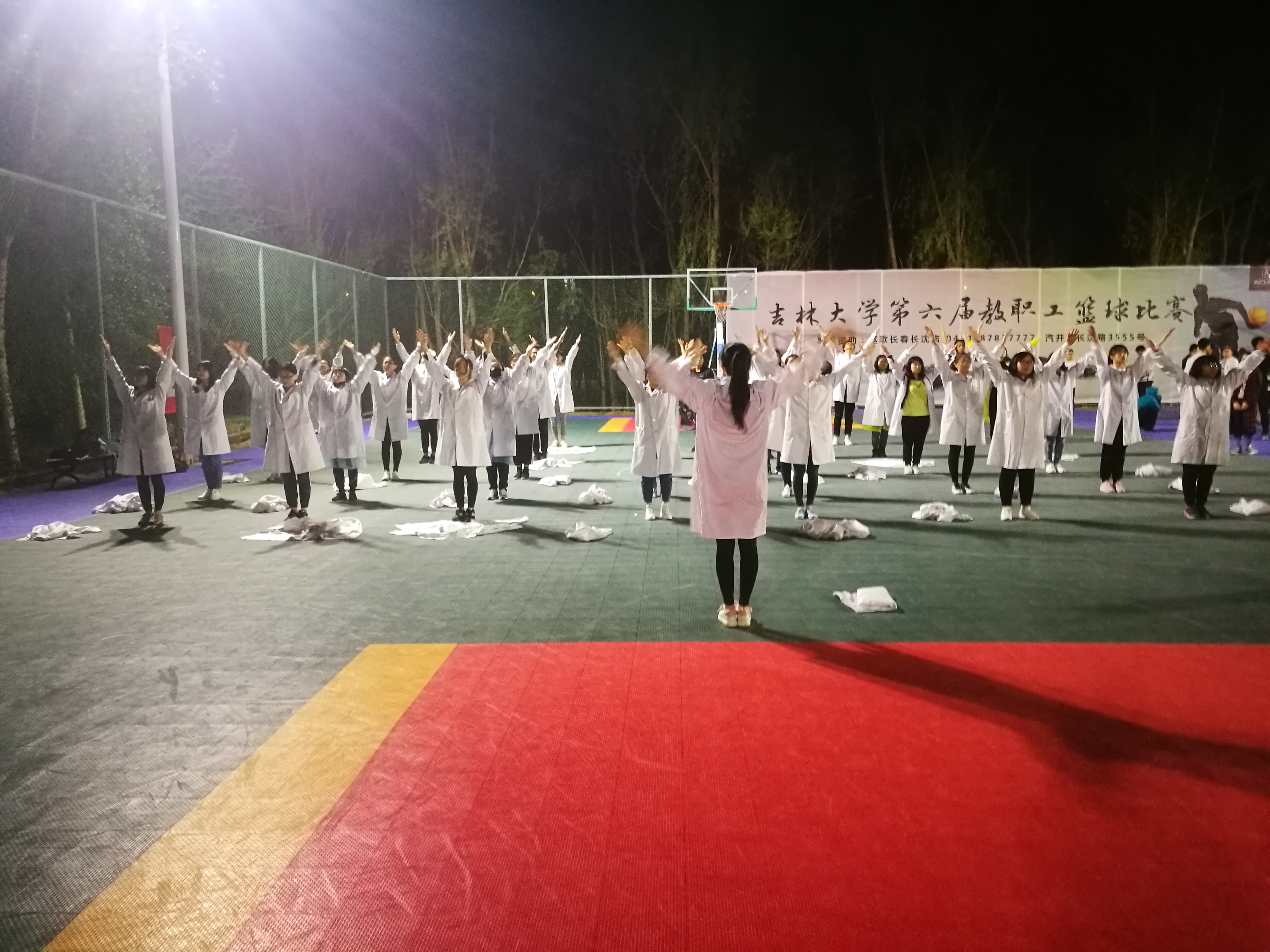 为备战即将到来的校运动会,太阳集团tyc539于2018年4月20日晚9:00起开始在体育馆东侧篮球场展开广播体操的训练工作。训练时间为每周的周二、周四、周五、周日的晚上9:00到10:30。