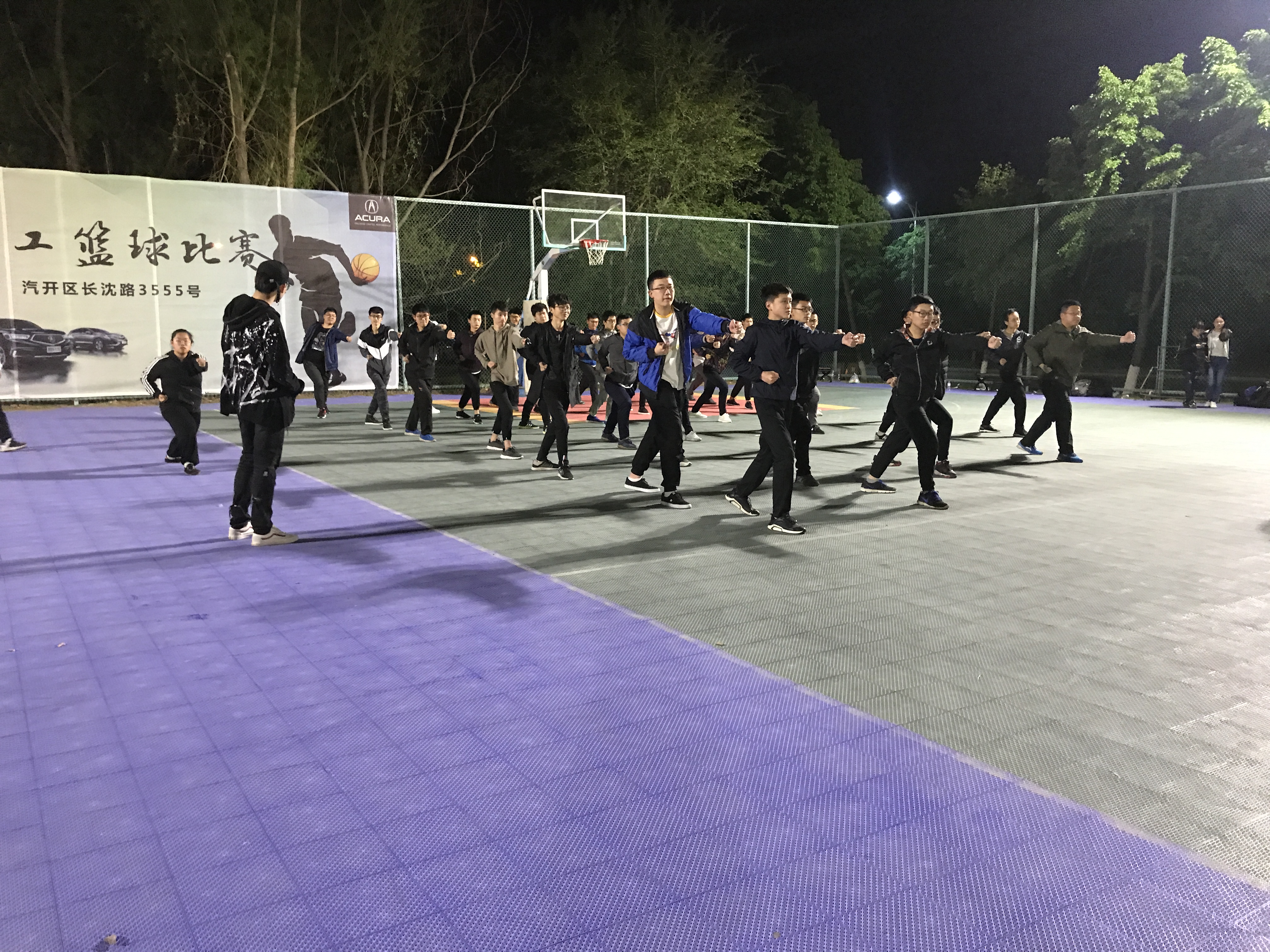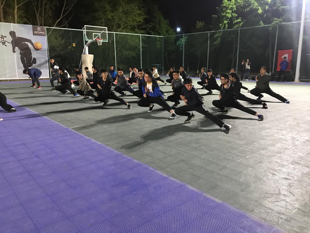 为增强员工体质,展现仪电学子的风采,在校运动会即将来临之际,太阳集团tyc539于2018年5月13日晚9:00在体育馆东侧篮球场展开三路长拳紧张有序的训练工作。