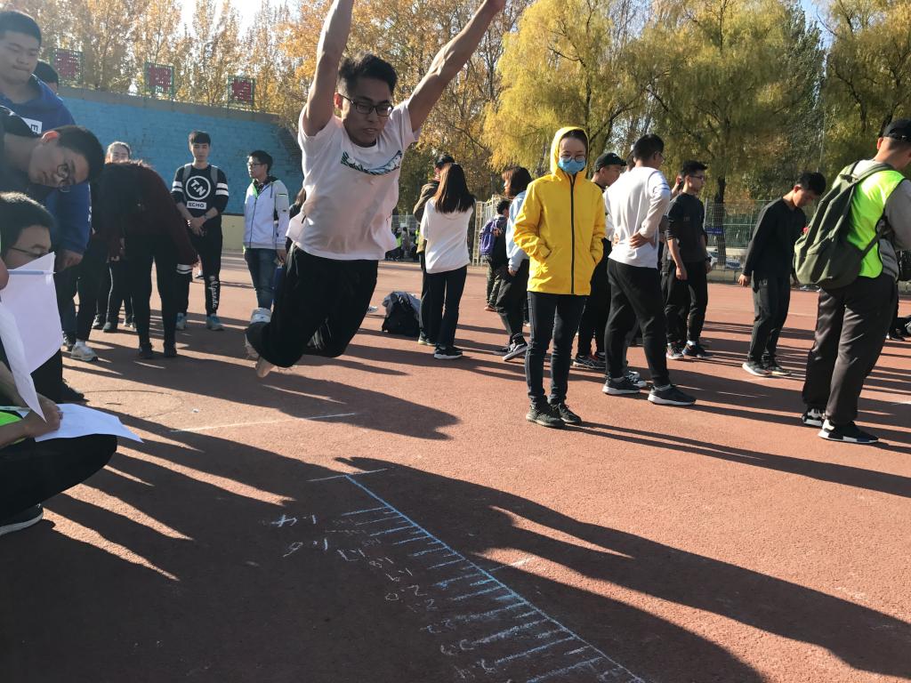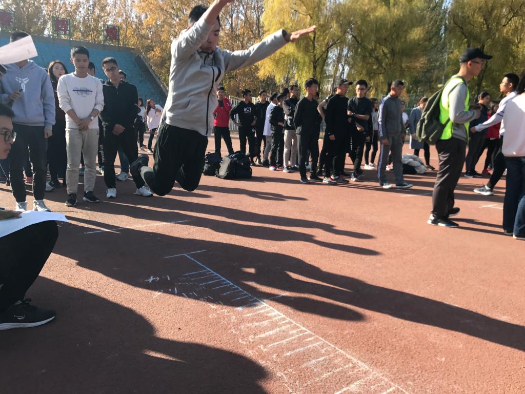 比赛前,同学们在各个领队的引领下进行签到,之后由小个协会的会长主持开幕仪式并预祝同学们取得好成绩。在进行了简短的热身活动后,体育部部长谢家运同学向2018级的同学们传授了以往的比赛经验,1:30比赛正式开始。在相对跳远比赛中,谢家运同学凭借以往的参赛经验并结合自身的优势,在试跳时就取得了2.85米的好成绩,在随后的正式起跳中,只见他调整好呼吸,全身肌肉紧绷,一跃而出,平稳落地后,经裁判员认定成绩有效,取得了2.95米的好成绩。比赛后各组领队带领参赛人员们测量身高,在短暂的统计后公布了成绩,仪电公司的同学们均有着出色的表现,在女子跳高比赛中王瑾同学取得了小组前二十的好成绩,而男子跳远比赛中谢家运同学更是在加权计算后名列小组第一,并成为了男子相对跳远比赛的纪录保持者。