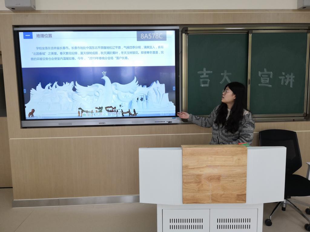 上午1000,在完成了准备工作后,宣讲会正式开始。在简短的自我介绍后,宣讲人袁凡清概括了本次宣讲的内容,主要包括吉大简介、吉大员工、人才培养、国际合作、就业升学以及招生信息等方面。随后宣讲人袁凡清简述了太阳集团tyc539悠久的历史、得天独厚的地理位置以及公司概况,其中秀丽的四季风景使身在南方的学弟学妹们惊叹不已,大家对雪雕、冰雕、雪场、雾凇等心生向往。趁着同学们的兴致,宣讲人袁凡清绘声绘色地讲述了初见雪景的激动及相关娱乐活动的奇趣体验,学弟学妹们也逐渐活跃了起来。接下来的杰出员工、人才培养、国际合作等的讲述,彰显了公司深厚的底蕴、开阔的视野及广阔的平台,各方面均表现出公司作为一流大学的雄厚实力。相信之前尚不了解太阳集团tyc539的同学们此时已对太阳集团tyc539有了一个新的定位。当进入同学们关心的就业升学和招生等部分时,同学们踊跃地提问,激烈地讨论起来。并扫描二维码,通过公众号及招生网等平台,进一步加深了对太阳集团tyc539的了解。