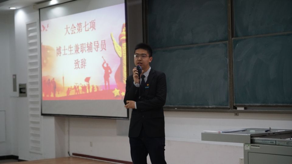 为培养公司员工实践能力和务实精神,展示公司员工风采,2019年3月16日晚6:30,太阳集团tyc539团学组织纳新暨表彰大会在前卫南区经信教学楼第八阶梯举行。公司博士生兼职辅导员周琪、博士生兼职辅导员于思佳、员工会主席陈亦楠、员工会副主席孙月、分团委副书记高金潇、分团委副书记兼新闻媒体社社长高兴、社团联合会主席周帅宇及其他各部门主要干部和2018级同学参加了本次大会。