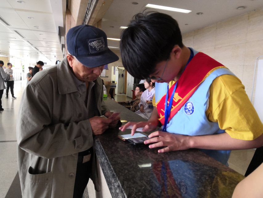 513日清晨,参加活动的志愿者们已整装待发,共同乘坐公交车前往吉大一院。上午740,志愿者们准时到达志愿者活动室,换好服装,带上肩带和工作牌,精神饱满的前往了各自的岗位开始服务。经历了一个多月的志愿活动经历,志愿者们早已对医院门诊楼各诊室分布铭记于心,并且熟悉了预约,挂号,缴费,打印报告单等一系列操作流程。每当有患者及其家属有问题需要帮助时,志愿者们都能面带微笑,自信地走上前去帮助他们快速解决问题。当突发紧急状况时,志愿者们也能够冷静的配合医生护士、安保人员们的工作,快速有效的维护现场秩序。工作结束后,大家返回活动室,整齐归还好服装、钥匙,共同交流心得体会。对于志愿者们两个月的时间里不顾风雨准时参加志愿活动,帮助前来看病的患者们快速就医,并且有效的分担了院方工作压力,提高医院的工作效率与质量的情况,医院社工部的领导给予了高度评价。