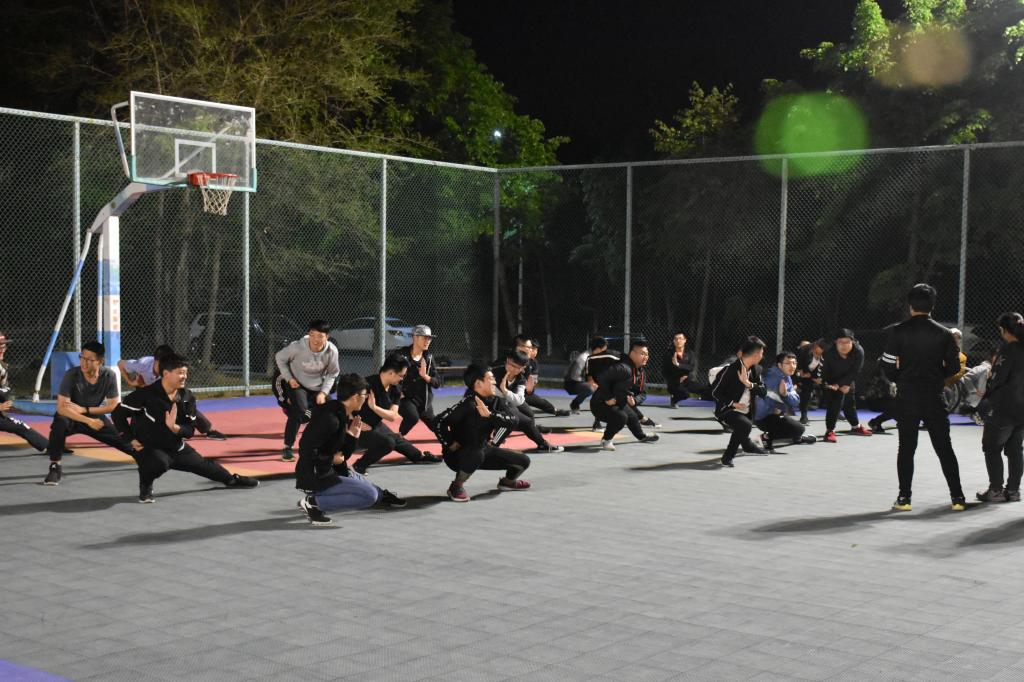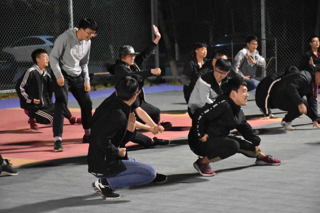 此次三路长拳队伍由来自2018级的30名同学组成,长拳教练由2017级同学担任。训练工作首先是由三路长拳教练——刘明鑫同学和曲德馨同学向参加本届运动会长拳比赛的同学示范动作,同时对动作细节进行详细的讲解。然后,教练将动作分解后,一步一步指导给参赛同学,力求每个同学都能将动作做到标准。在保证动作标准的同时,同学们还要时刻配合队伍的其他同学,保证队伍整齐划一。虽然夜晚天气寒冷,但同学们依然精神饱满,毫不懈怠地进行着长拳训练。最后,教练们指导同学们排练了三路长拳比赛当天的进场入场,力争在比赛当天,向全校师生展现仪电公司的风采。