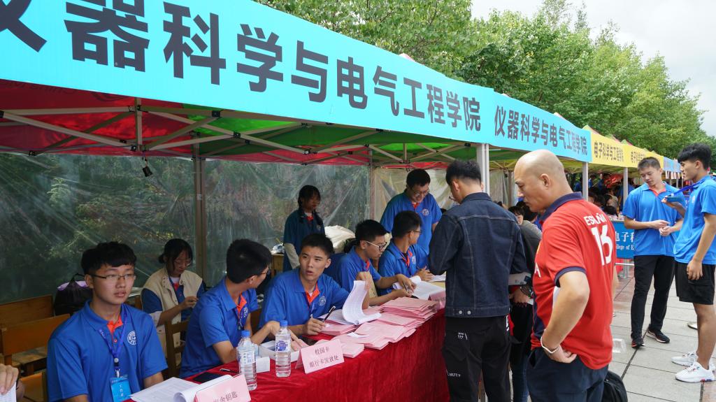 多位校、院领导也前来看望仪电公司迎新工作人员以及报到新生,并在现场指导工作,解答新生及家长的问题,确保迎新工作顺利进行。在迎新准备工作中,公司党委副书记周伟老师冒雨组织工作,热情与新生及家长交流,解答在大学的学习、生活问题, 2019级新生辅导员马姗姗老师尽职尽责,维持迎新现场的秩序,为新生及新生家长答疑解惑。2019级新生也礼貌配合,使得迎新工作顺利进行。