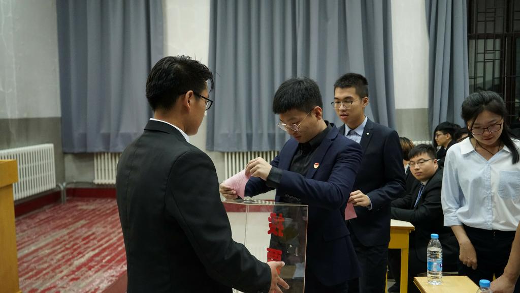 大会在与会人员合唱的中国共产主义青年团团歌中拉开了序幕。陈亦楠同学代表第十四届团学组织作了工作报告,大会审议并通过了工作报告。随后周伟老师为第十四届团学组织主要员工干部颁发了荣誉证书。荣誉证书颁发仪式结束后,第十五届团学组织主要员工干部候选人从个人履历、成绩总结和未来工作展望三个部分依次上台做竞职演讲,现场气氛十分热烈。为秉承民主、公平、公正的原则,与会老师和员工代表现场进行投票、唱票确定十五届团学组织主要干部最终人选。经过激烈角逐,大会认定2017级于淇同学当选第十五届分团委副书记,吴广栋同学当选员工会主席,仲维一同学当选社团联合会主席,大会还选举产生了第十五届团学组织各部门负责人。竞聘结束后,2018级史博日同学作为优秀干事代表发言,他表示在今后的员工工作中,一定履行团学组织成员职责,兢兢业业为同学们服务,为公司的发展贡献自己的一份力量。最后,公司党委副书记、副经理周伟老师发表总结讲话。他高度肯定了第十四届团学组织成员的工作成绩,并对新当选的团学组织主要员工干部提出了殷切希望和明确要求,希望公司团学组织成为团结一致、甘于奉献的优秀集体。