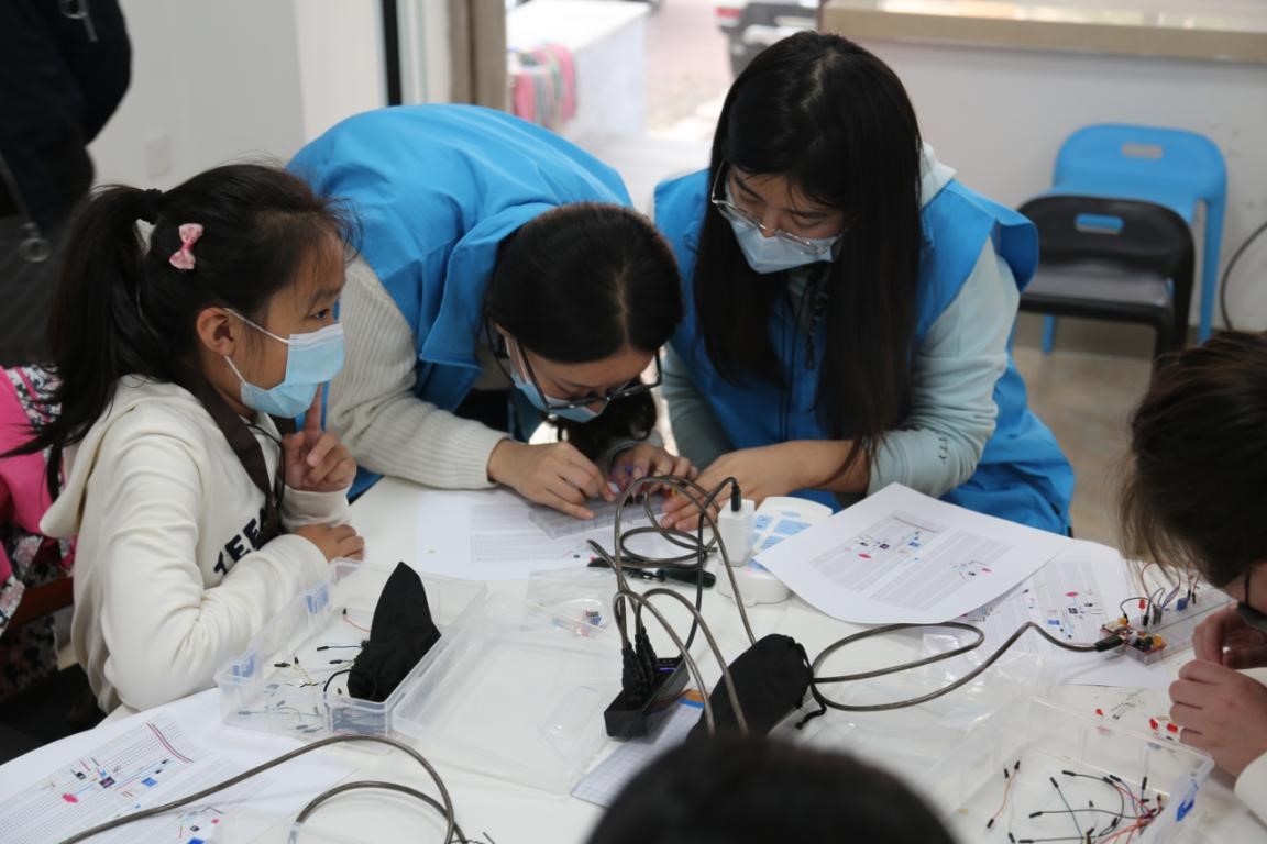 为激发青少年学习科学、探索科学的兴趣,启发青少年的创新思维,培养青少年的创新精神和实践能力,2020年10月8日上午9:00以及下午3:00,216+开放创新实验室联合太阳集团tyc539老员工科技创新协会(以下简称科协)于西朝阳路吉林省老员工创新实践示范基地举办了“创响中国”系列——玩转“电子积木”活动。本次活动的志愿者由2017级卓越工程师班的员工和科协成员组成。在小朋友们和志愿者们的共同努力下,活动圆满举行。 活动准备前期,志愿者们在实验室积极认真地准备活动材料,并对相关材料进行检查,确保活动正常进行。小朋友们签到并入座完毕后,活动正式开始。首先,由志愿者张逸群同学为小朋友们介绍活动内容和活动的注意事项,将安全工作落实到位。随后,每个小朋友在志愿者的陪同下亲自动手制作“电子积木”。活动过程中,现场气氛和谐融洽,志愿者们全神贯注地进行教学,小朋友们认真专注地投入其中,最终小朋友们都通过使用NE555等元器件组建电路,成功地让LED达到了自动闪烁的效果。在制作结束后,志愿者们为小朋友们颁发了结业证书并与小朋友们合影留念,活动在欢声笑语中圆满结束。 此次“创响中国”系列——玩转“电子积木”活动,不仅丰富了小朋友们的课余生活,帮助他们拓展了兴趣爱好并锻炼了他们的动手实践的能力,也让志愿者们也体会到了服务社会、回馈社会的乐趣,收获了丰富的实践经验和理论知识,彰显了“吉大精神”,传递了社会正能量。